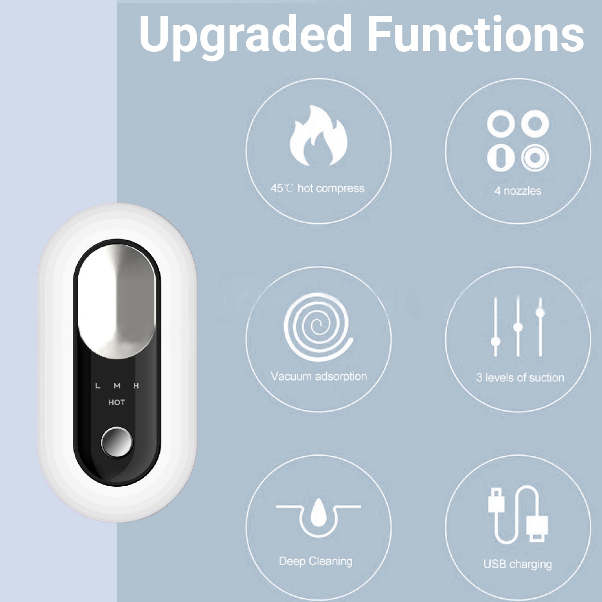 Gently lift oil and debris for a fresher-looking T-zone. Compact, adjustable suction, and swap-able tips—best used 1–2× weekly on clean, steamed skin.